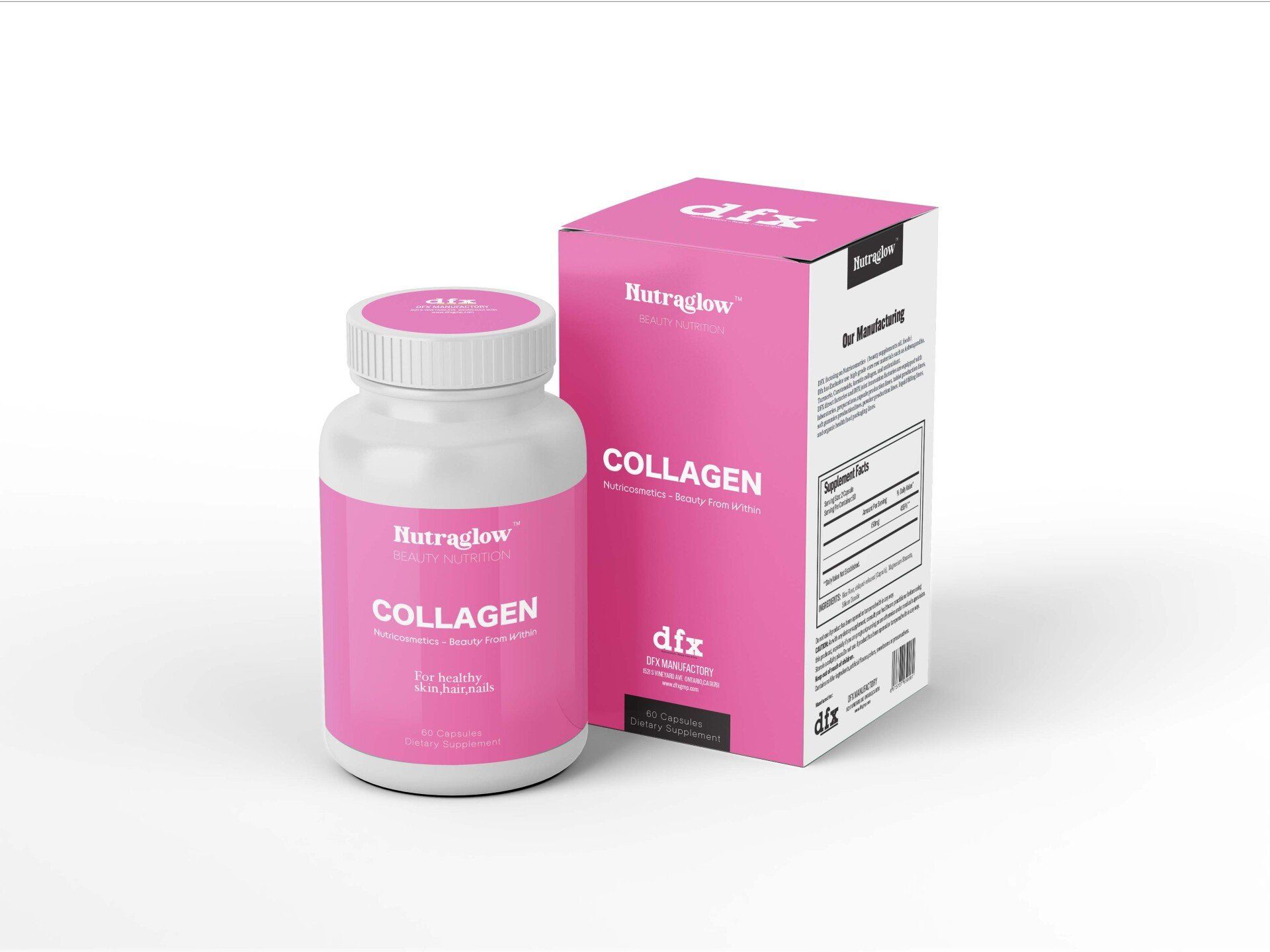 DFX focusing on Nutricosmetics(beauty supplements,oil, foods) Dfx has Exclusive use high-grade core raw materials such as Ashwagandha, Turmeric, Carotenoids, keratin collagen, and antioxidant. DFX direct factories and DFX joint innovation factories are equipped with laboratories, preparations,capsule production lines, tablet production lines, soft gummies productionlines, powder production lines, liquid filling lines, and organic health food packaging lines.